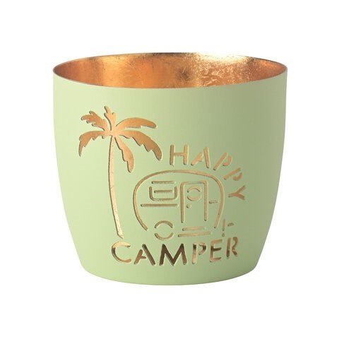 Madras, Windlicht, M, Motiv: Happy camper, pastellgrün/gold